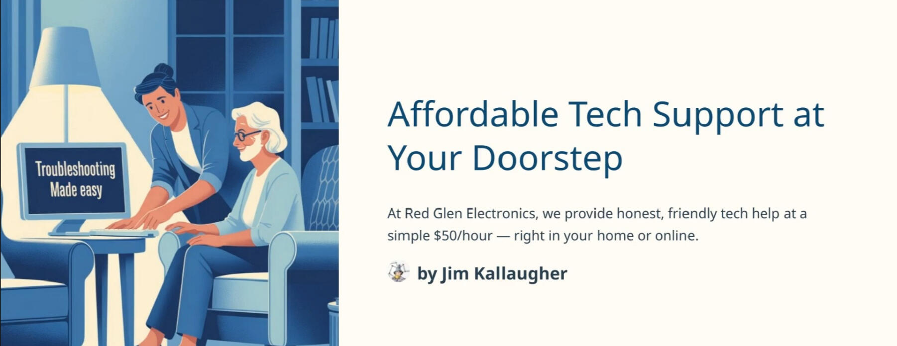 Why Choose Red Glen Electronics?Local tech support at a reasonable $50/Hour rate• Tailored for Boomers (or younger, too!)